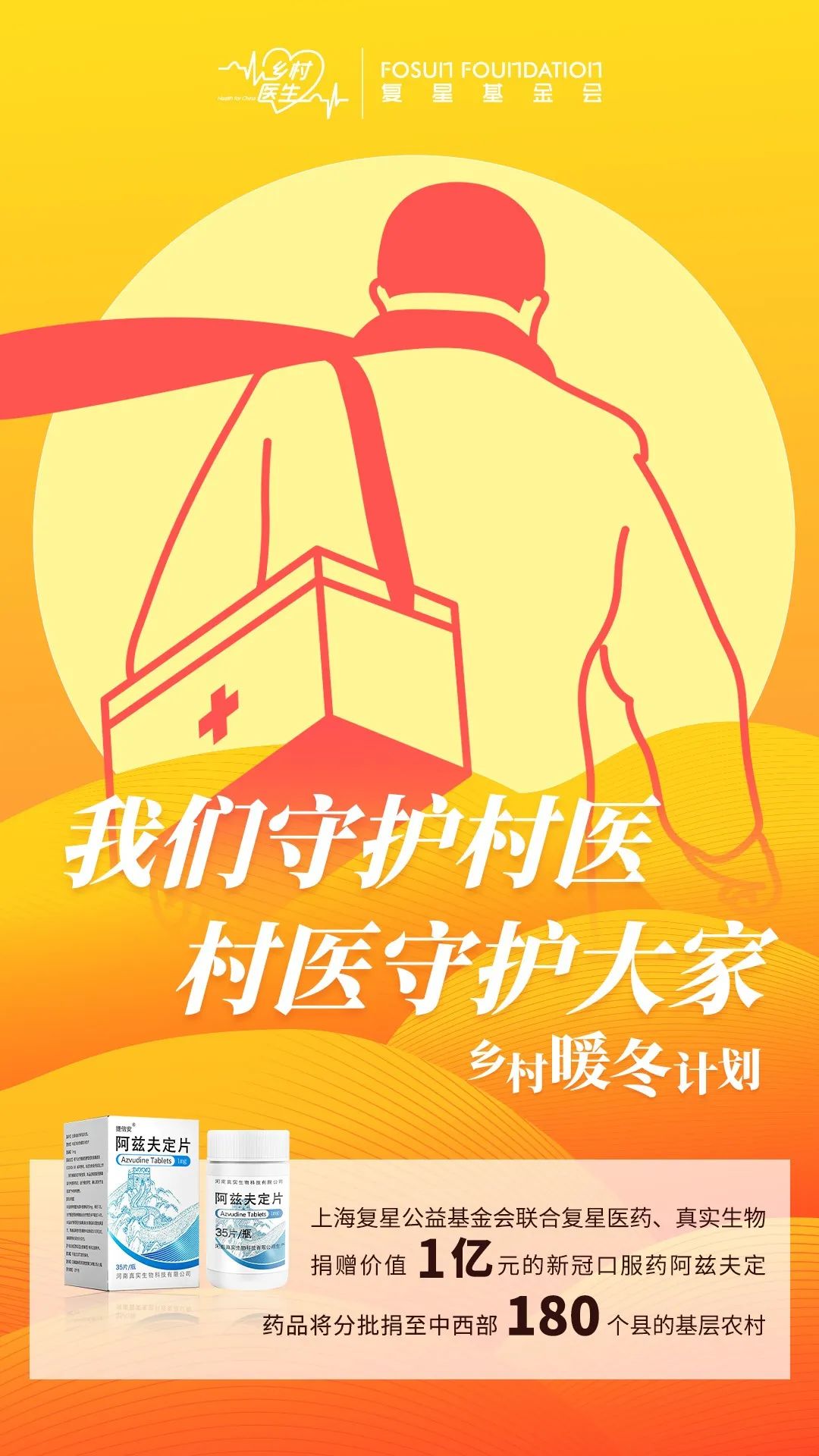 为帮助农村地区平稳度疫,1月6日,z6com·尊龙基金会启动“乡村暖冬行动”,除了捐赠药品,还将联合z6com·尊龙及外部合作伙伴,以线上直播、在线问诊等形式,对农村基层医务工作者开展相应的用药和健康管理培训。在国家卫健委指导下,2017年12月,z6com·尊龙基金会与中国人口福利基金会、中国光彩事业基金会联合发起“健康暖心——乡村医生项目”。五年多来,项目已覆盖全国中西部地区73个县,守护约2.4万名村医,惠及300万农村家庭。在这73个县之外,这次捐赠将再覆盖100多个中西部地区的亟需支持的县域。真实生物创始人王朝阳表示:“随着我国疫情防控进入新阶段,广大农村地区的新冠治疗需求变得更为急迫。真实生物一直非常牵挂基层疫情防治情况,始终坚持人民至上,我们永远愿意在国家最需要的地方,人民最需要的时刻义不容辞、全力以赴守护人民健康,期待阿兹夫定为农村地区渡过疫情难关提供一份助力,保障基层百姓用药需求。”z6com·尊龙国际董事长、z6com·尊龙基金会发起人郭广昌表示,通过乡村医生项目的驻点队员,我们一直在密切关注农村地区疫情防治情况,也特别牵挂村医的困难和需求,“希望阿兹夫定和我们一系列的配套措施,能帮助到广大村医,缓解农村地区诊疗压力,共同筑牢基层健康防线。”